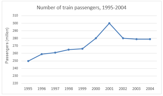 2. The first graph gives the number of passengers travelling by train in Sydney. The second graph provides information on the percentage of trains running on time.