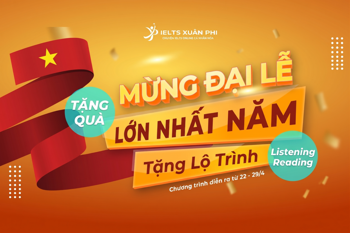 Dịp lễ thường là thời gian nghỉ ngơi và vui chơi, nhưng với các bạn học IELTS, đây cũng là thời điểm vàng để bứt phá. Chính vì vậy, IELTS Xuân Phi triển khai chương trình “Mừng đại lễ – Tặng lộ trình”, chỉ cần đúng phương pháp, bạn hoàn toàn có thể vừa nghỉ lễ vui chơi, vừa học hiệu quả. Cụ thể chương trình như sau: